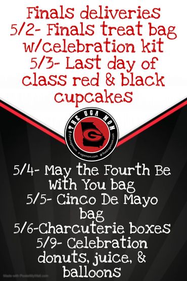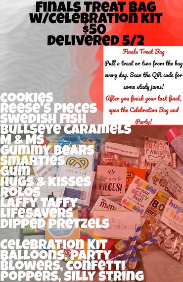 OK, I know, finals are NOT fun! Make your student's life a little easier this week with a special daily delivery!